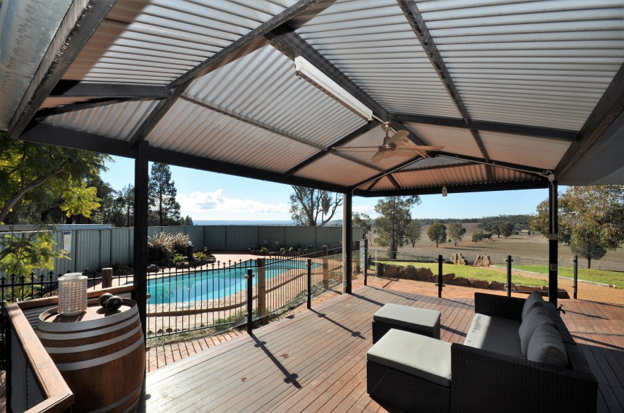 With commanding views to the East, this homestead is perched high to take full advantage of the amazing outlook! This farmlet is just 10 minutes to the CBD and stands out from the rest offering you town water, a licensed bore and 20000 gallons of rain water storage,and ample room for more tanks. A bullnose verandah surrounds the home with culminating with a stunning entertaining deck overlooking the sparkling inground salt water swimming pool.