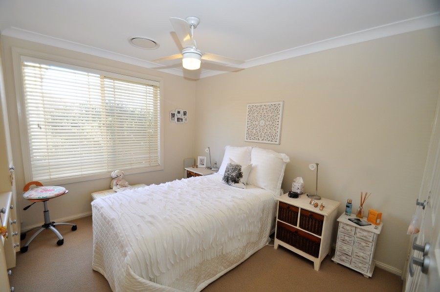 The main bedroom features a 3 door robe, along with a custom built wall of storage ideal for those that enjoy craft and sewing! The second bedroom will easily accommodate a double bed and both are separated by the bathroom, featuring a separate toilet.