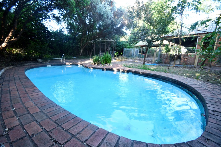 An inground swimming pool is surrounded by greenery ensuring complete privacy and a large free standing double carport to the side of the house.